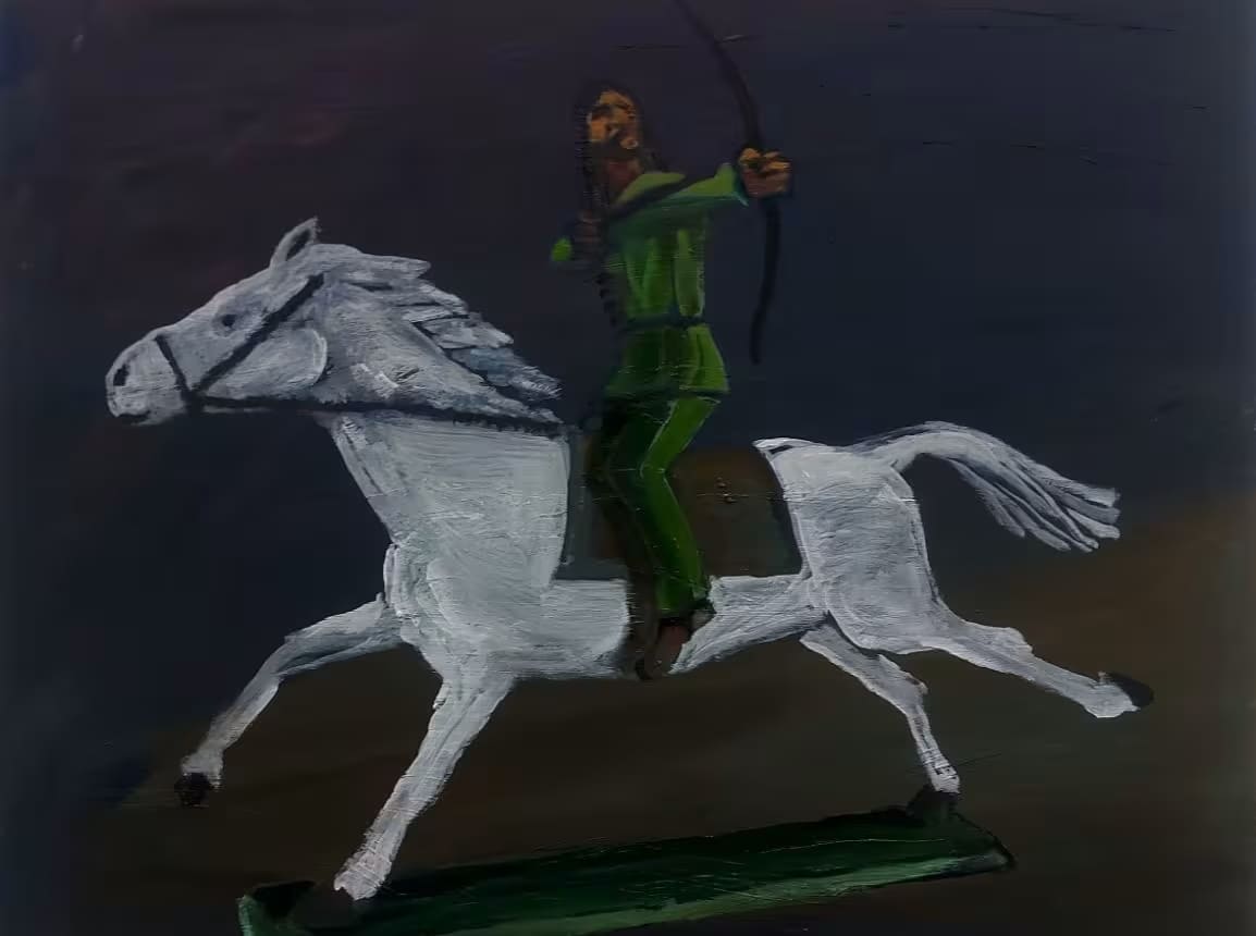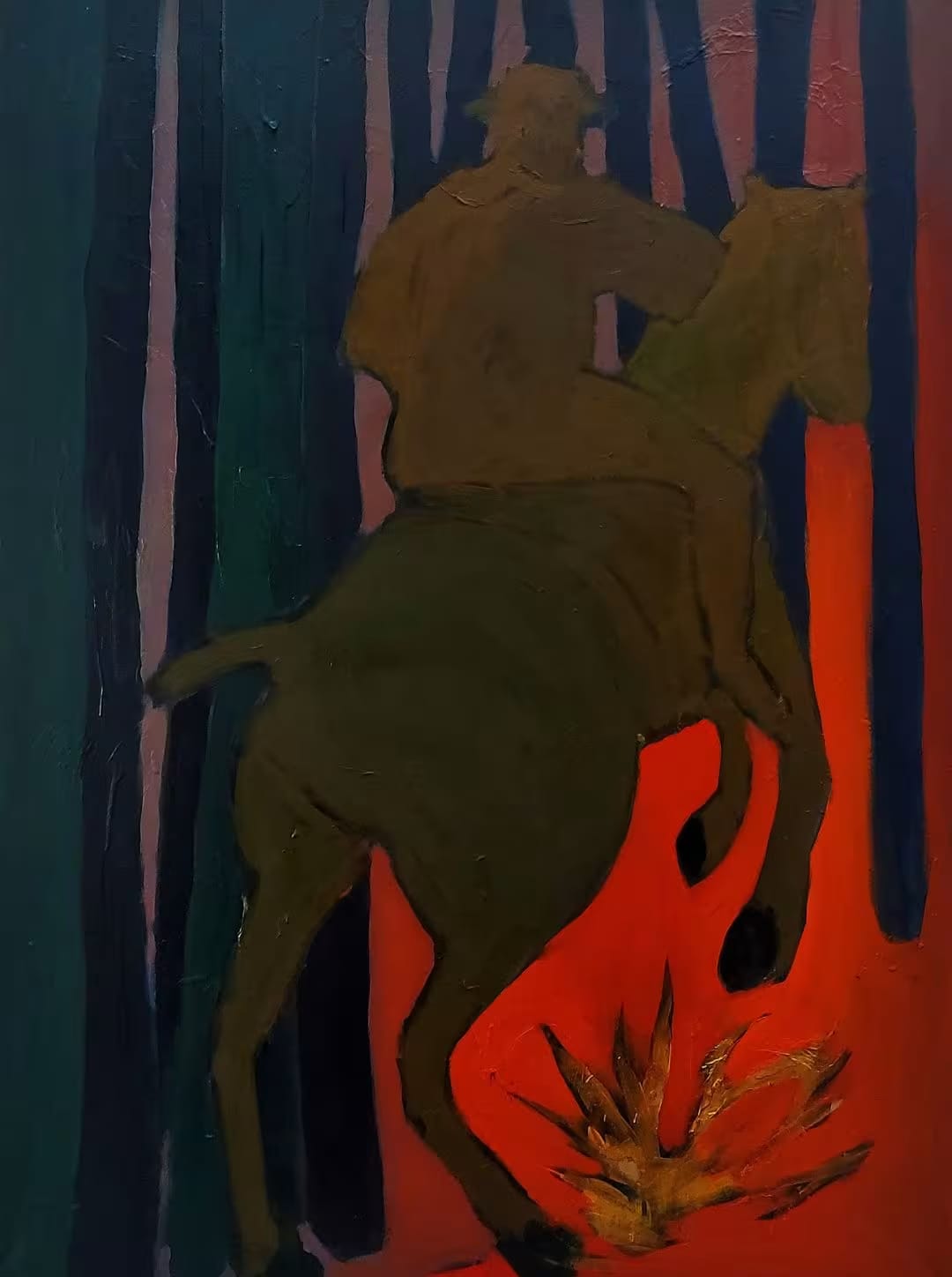 En esta nueva serie de cuadros, Baptiste Laurent explora temas cargados de simbolismo y memoria, donde el mundo de la infancia, las escenas de guerra y el imaginario colectivo se encuentran en una explosión de color y movimiento. En sus últimos lienzos, el artista nos sumerge en un mundo a la vez nostálgico y rebelde, poblado de tiovivos encantados, caballeros de madera, vaqueros e indios, al tiempo que toca las sombras de la violencia y la guerra.